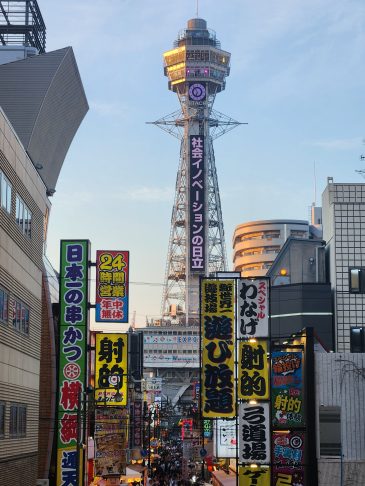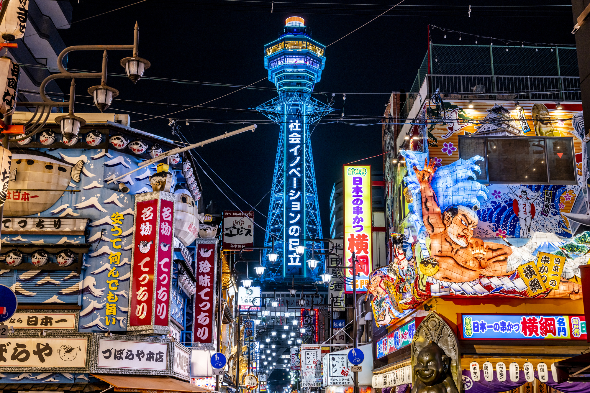 Osaka’s landmark Tsutenkaku Tower is registered as a nationally designated tangible cultural property. Its observation deck offers panoramic views of Osaka, and it features the Billiken statue—believed to bring good luck when you touch its soles.