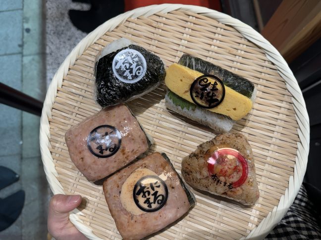 It was quite busy around 77:30 pm on a weekday, and there were about 2 groups in line. You pick up the rice balls you want to buy, place them on a colander, and pay at the register. You can also take out and eat on the benches outside. They also sell freshly grilled yakitori, so I think it would be perfect with rice balls. I bought too much because I was hungry, so I'll try to take less next time.