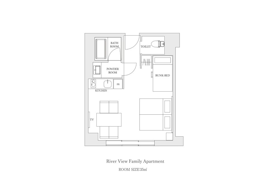 A unique room that offers a view of the beautiful Sumida River. The room includes a bunk-bed sure to be popular with children.