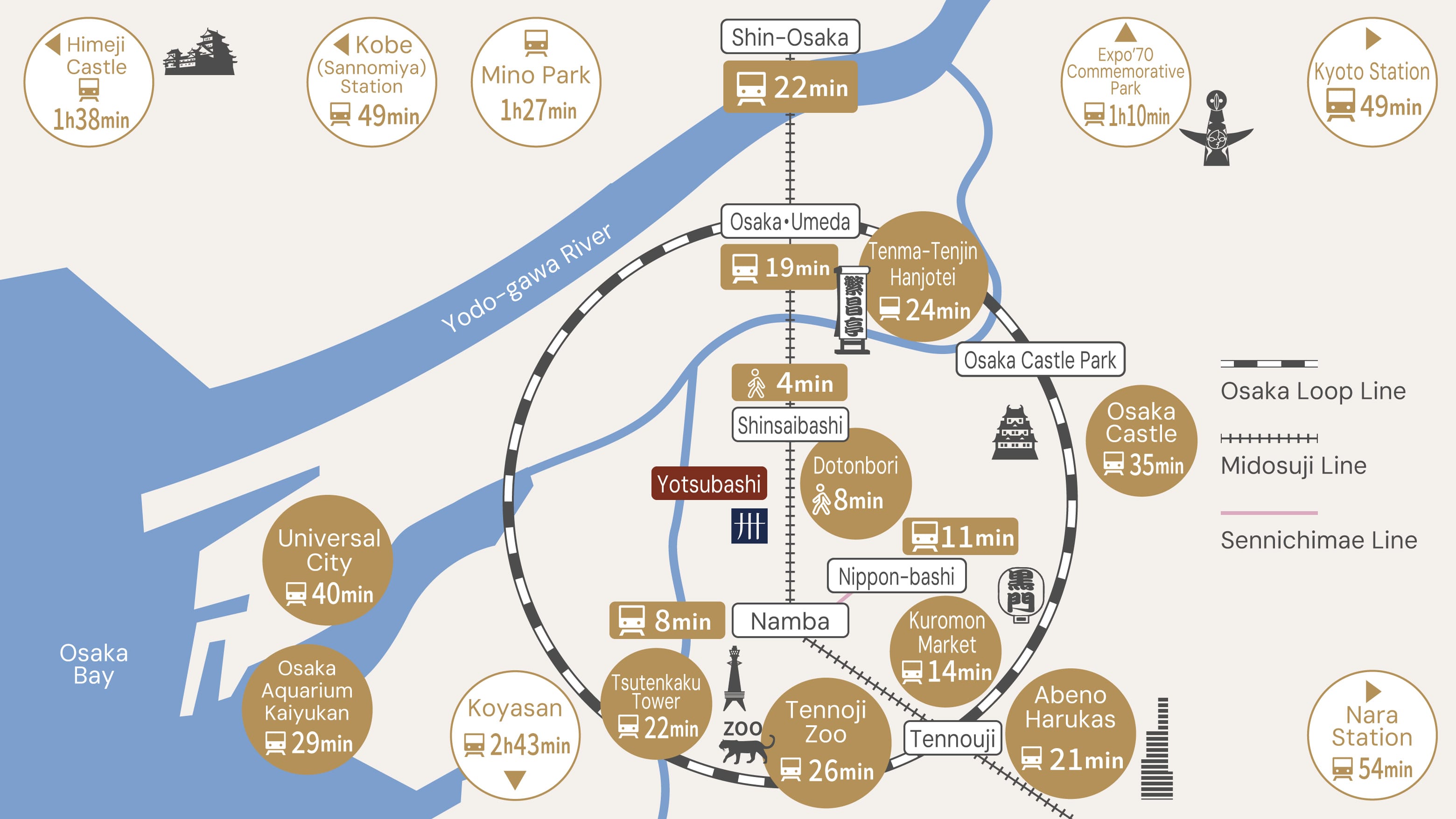 All around you, the atmosphere of bustling Japanese festivals; close to Namba and Shinsaibashi for convenient shopping trips and sightseeing