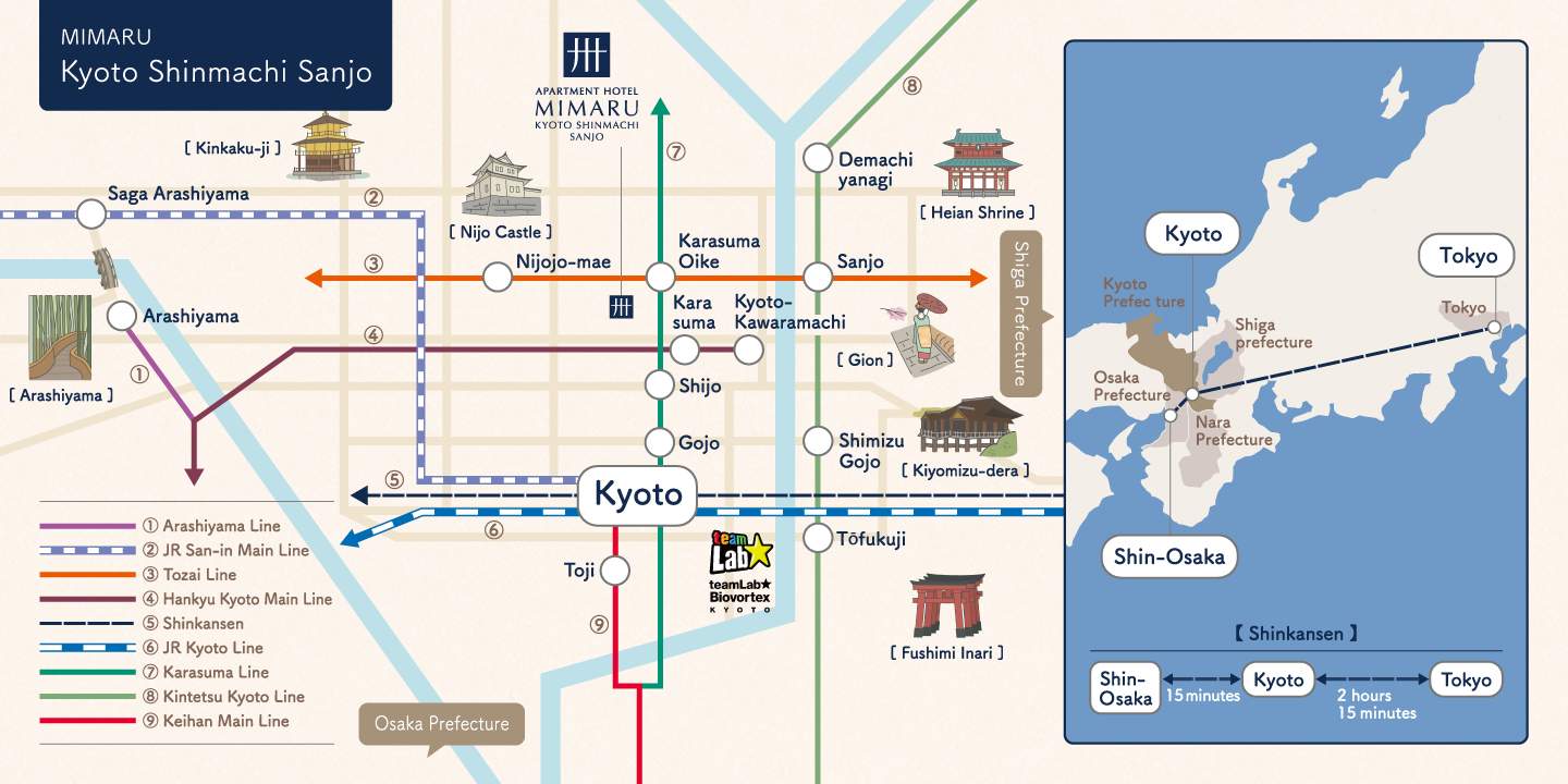 Karasuma Oike Station(Kyoto City Subway) 5-minute walk