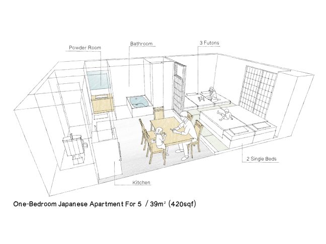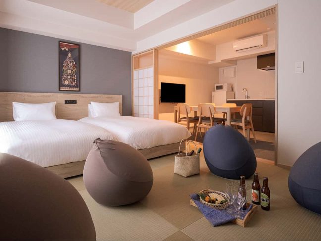 This room features premium tatami mats and overflows with classic Japanese refinement. Up to five guests can stay here.