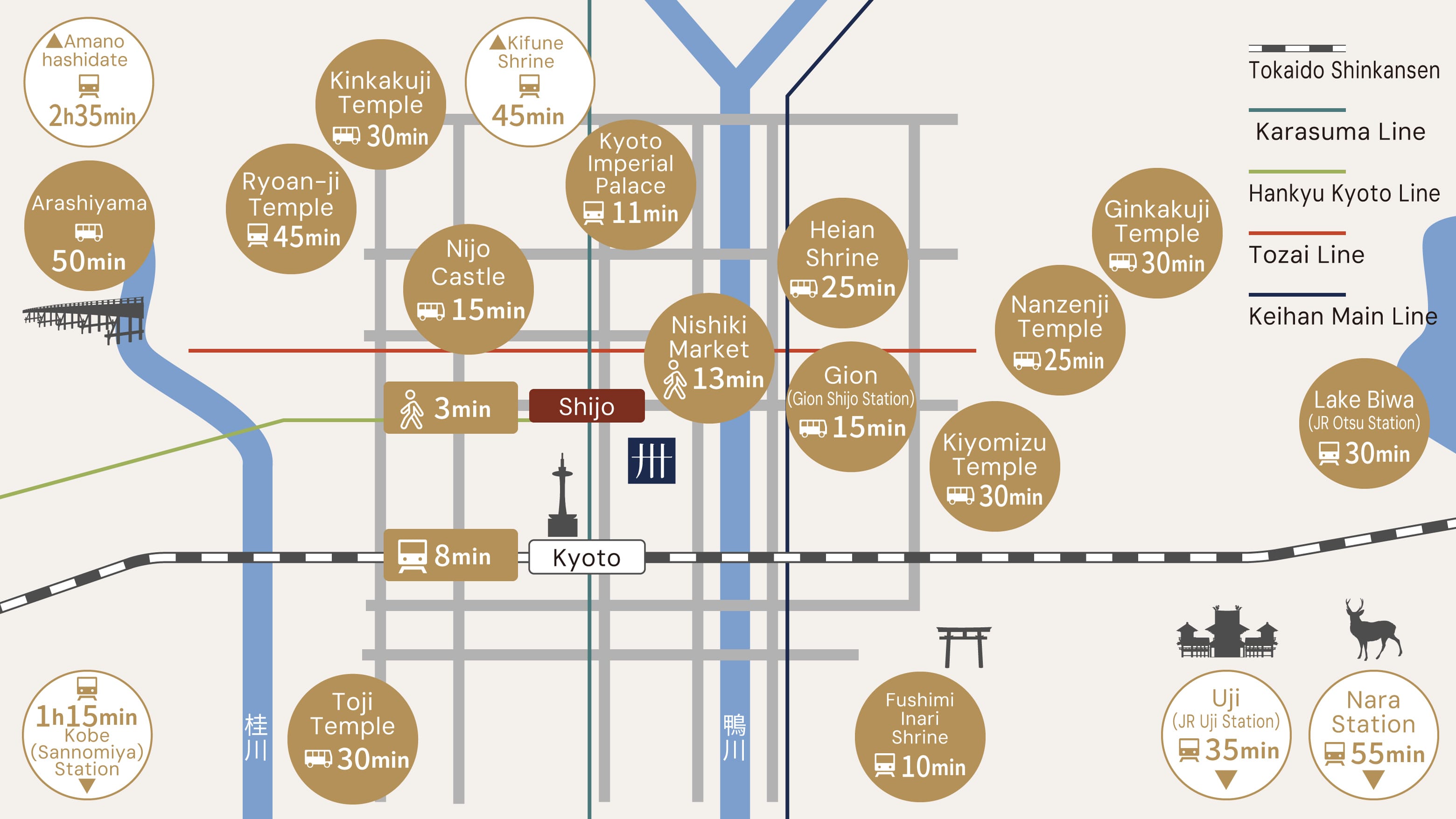 Shijo Station (Kyoto City Subway) 3-minute walk