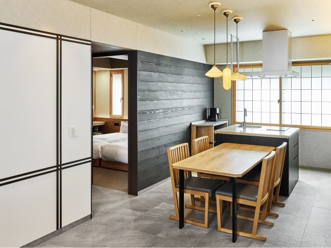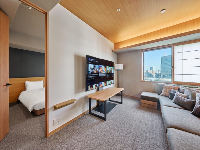 A suite room featuring two bedrooms and a Japanese-style room. Use the suite's space flexibly by opening and closing the doors of the Japanese-style room as needed.