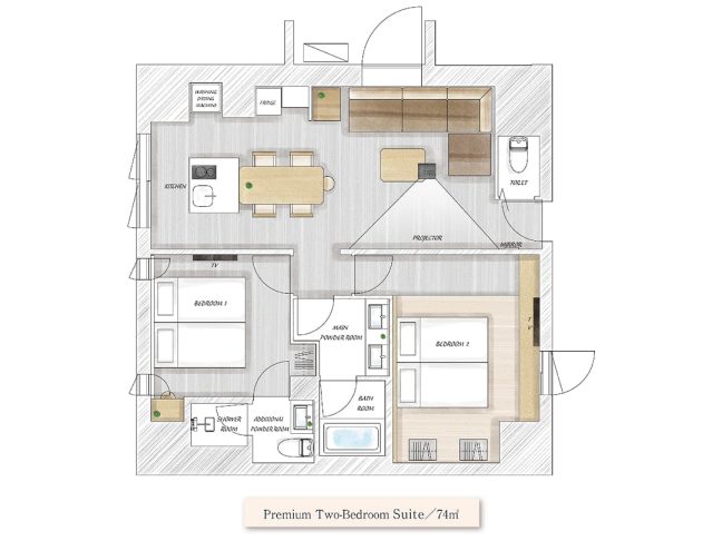Suite room featuring a projector and two bedrooms. Relax and enjoy your favorite movies, music and food.