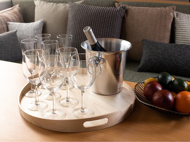A suite with two bedrooms. Gather around the large dining table and enjoy meals together.