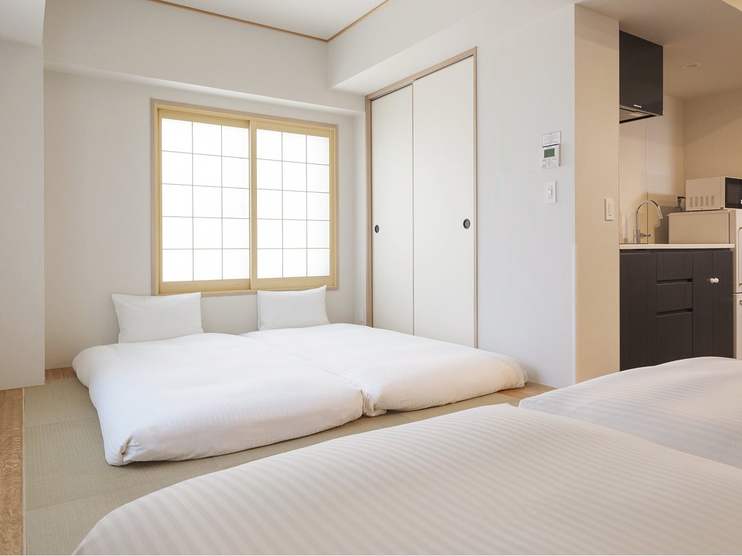 This is a pair of spacious Japanese-style rooms with a door connecting them, allowing a degree of privacy while still letting groups gather together easily.
