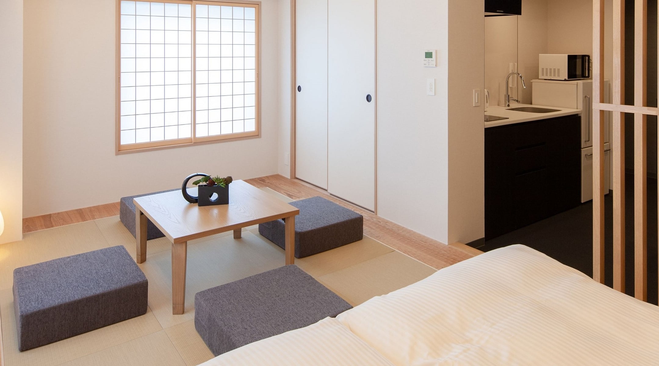 This room features premium tatami mats and overflows with classic Japanese refinement. Up to four guests can stay here.