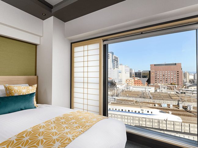 Our City View rooms look over Kyoto Station and boast premium views of the train tracks as well as Kyoto’s skyline. Both kids and adults can’t help but feel excited as they watch the bullet train (or shinkansen in Japanese) and other trains come and go from their guestroom.