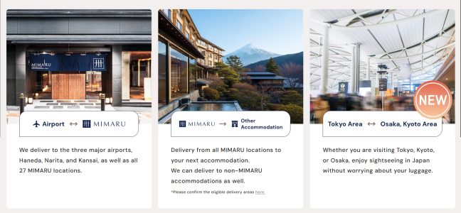 Launched in May 2024, the service enables guests to drop off luggage in the morning and receive it at their destination the same evening. Originally offered between airports and MIMARU locations in Tokyo and