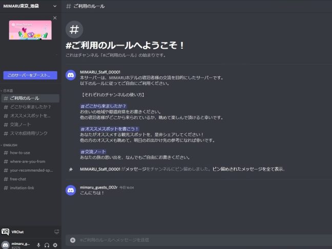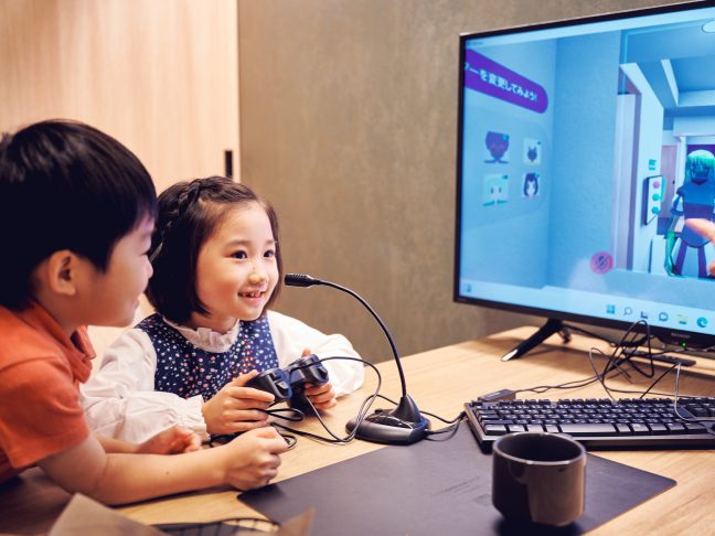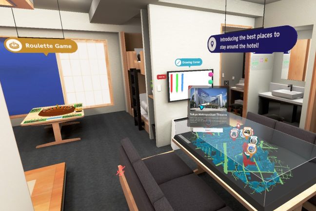 From the PC in your room, you can access a second, virtual room: The metaverse room. Guests can use their avatars to participate in VRChat, interact using voice chat, exchange city information on maps, and enjoy treasure hunting games.