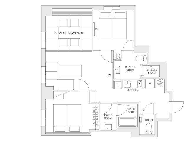 The suite-type rooms on the upper floors include Japanese-style rooms; city view rooms with a view of the Skytree and rooms with an open kitchen. The master bedroom features a private shower and a lavatory. There will be no rush preparing in the morning, even when traveling with a large group.