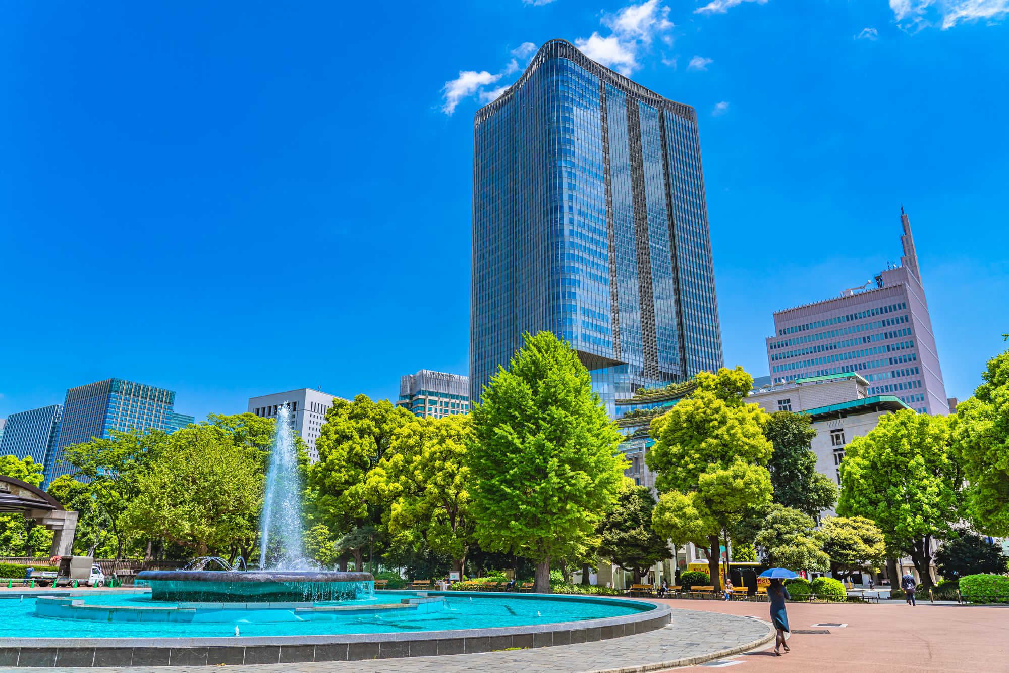 東京都千代田区にある公園。東京駅や銀座の近くという立地にも関わらず、公園内には噴水や池、色とりどりの花が咲く花壇や南国風の木々があり、豊かな自然を感じることができます。