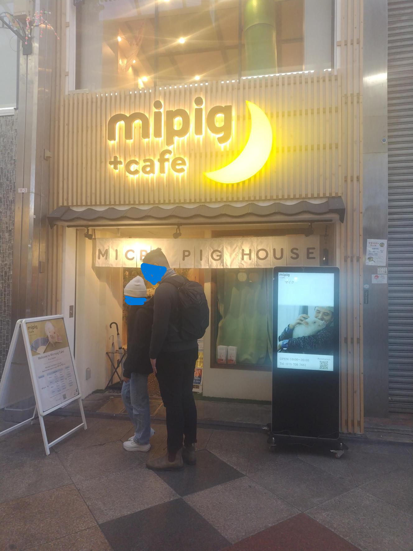 海外からのゲストに大人気のマイクロブタさんカフェです。お店の立地は寺町商店街の中にあり、お土産を買ったり、洋服を見たり、カフェやごはんのついでに行けます。私達が案内してもらった2階には、10匹くらいのブタちゃん達がいました。生後2年くらいの大きい子から、生後4か月くらいの小さい子たちもいました。ブタさん達は清潔で、匂いもしませんでした。店員さん曰く、ブタさん達は寒がりでさみしがり屋なので、床に足を延ばして座ったり、胡坐をかいて座ると、お膝の上に乗ってくつろいでくれます。可愛いマイクロブタさんですが、個体差があり、なでてほしい箇所が違うそうです。スタッフさんに、ブタさんのなでてほしい場所を確認して、ブタさんを気持ちよくしてあげるのがいいですよ。