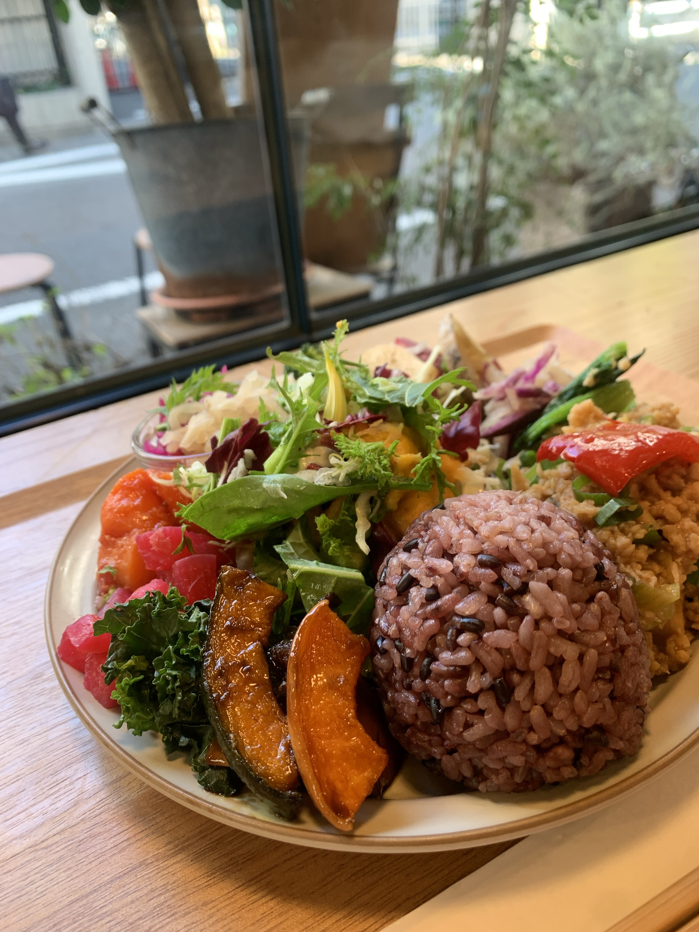 数少ないビーガン料理屋さん。お店の前は植物が沢山置いてあって、第一印象がとても良い。入ると、左の棚にビーガンとオーガニックの商品が並べている。お茶や見慣れない商品ばかリ。メニューはシンプルで、種類が限られている。日替わりランチプレートといくつかの単品。またはお弁当。野菜だけなのに、ボリュームたっぷり、味がちゃんとする。平日と週末の値段の差だけは少し意味不明ですが、この品質なら全然安い方。あと、お飲み物も当然Vegan。マフィンも。しかし、Veganだけの人が喜ぶわけじゃない。健康への意識があるゲストにはオススメ。お弁当も可能なので、公園でもVegan 楽しめる!
