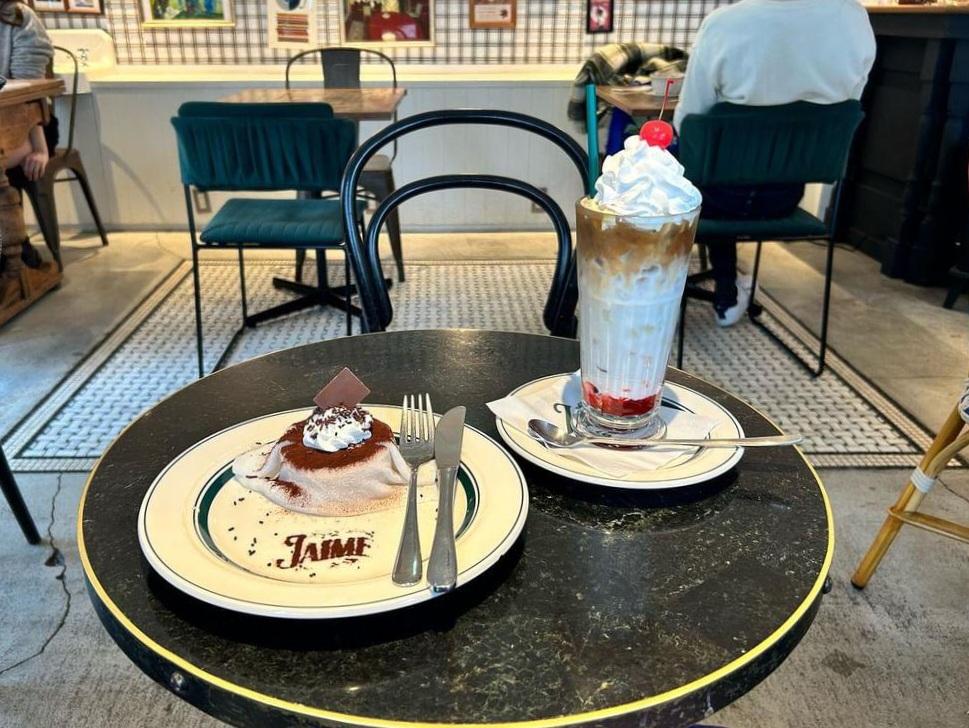 MIMARU東京赤坂から徒歩3分!カフェ内は2席が6テーブルと4席が2テーブルで、広く感じる。飾りとデザインもとても心地いい。壁や玄関はだいぶ窓のため、とても明るく見える。メニューとしては:季節限定、ランチセット、普通メニューもある。しかし、お店の名前「JAIME」が小さく書いてあって、google地図なしでは見つかりくい。コーヒーはきちんとしたコーヒーで、デザートも味がリッチ!
