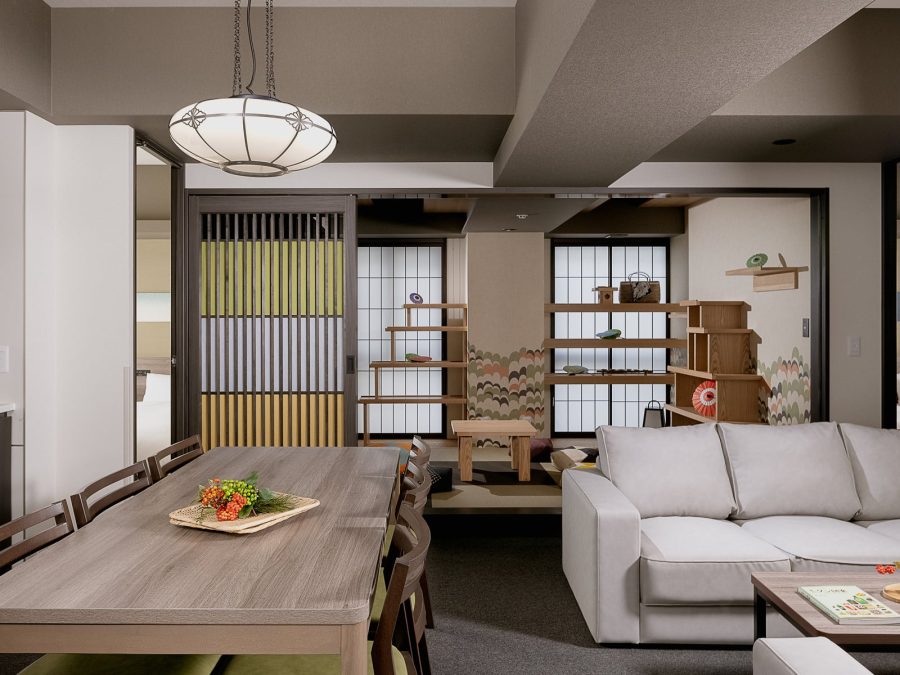 京都市内を東西南北に移動可能な「烏丸御池駅」徒歩3分全室、2つの独立ベッドルームを備えた85㎡のゆとりの客室空間。