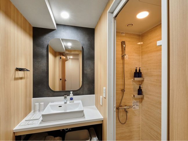 洗面台とバスルームが別になっているのもポイント。広いバスルームで湯舟に浸かってゆったり疲れを癒してください。