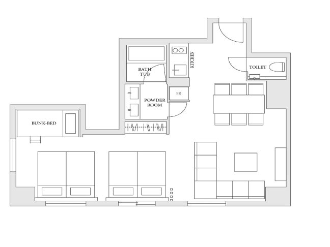 隣り合ったお部屋を内側のドアーつで行き来できるタイプ。一定のプライバシーは確保しつつ、グループで繋がることができます。