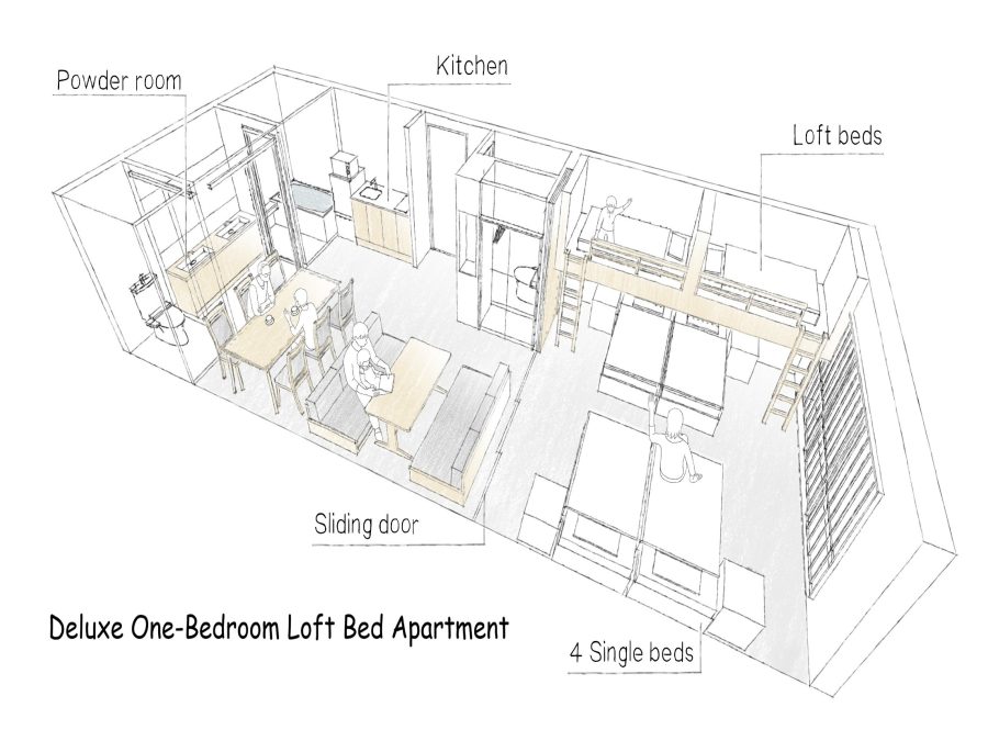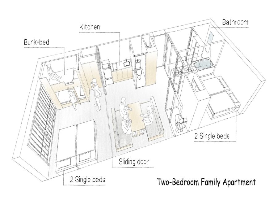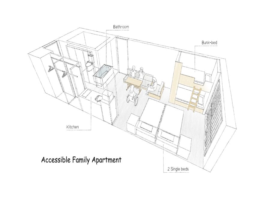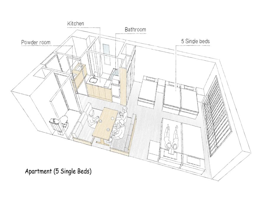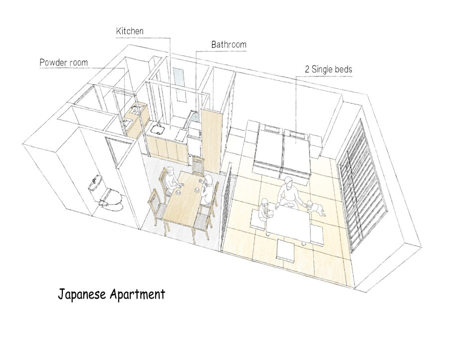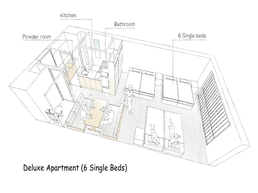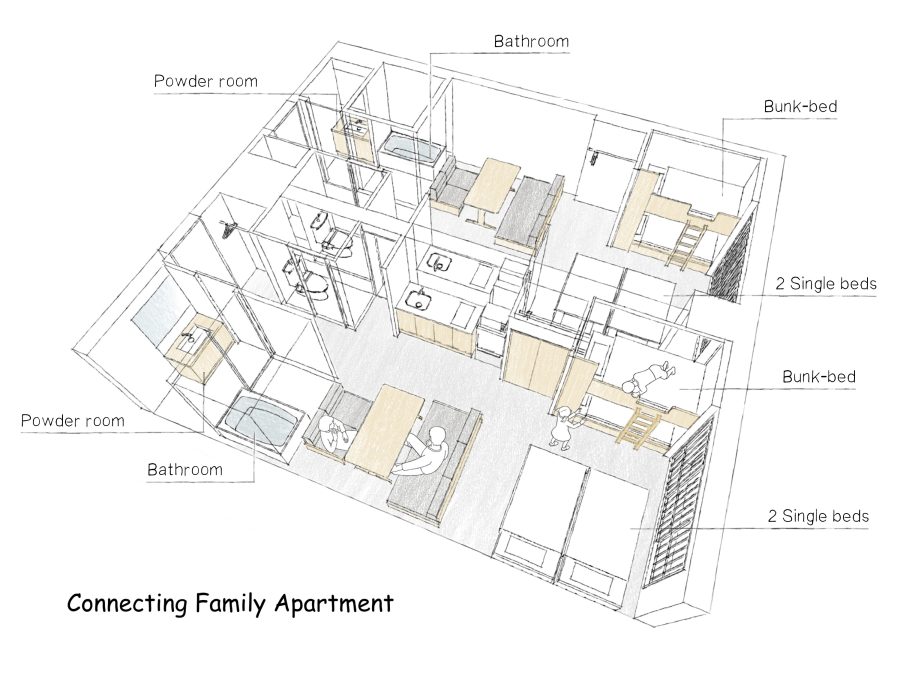 隣り合ったお部屋を内側のドアーつで行き来できるタイプ。一定のプライバシーは確保しつつ、グループで繋がることができます。