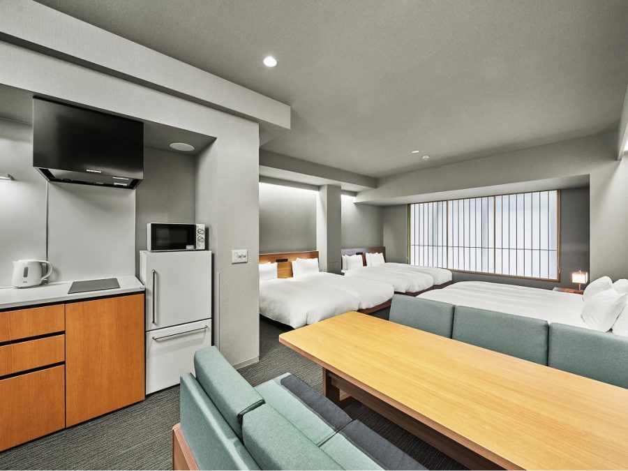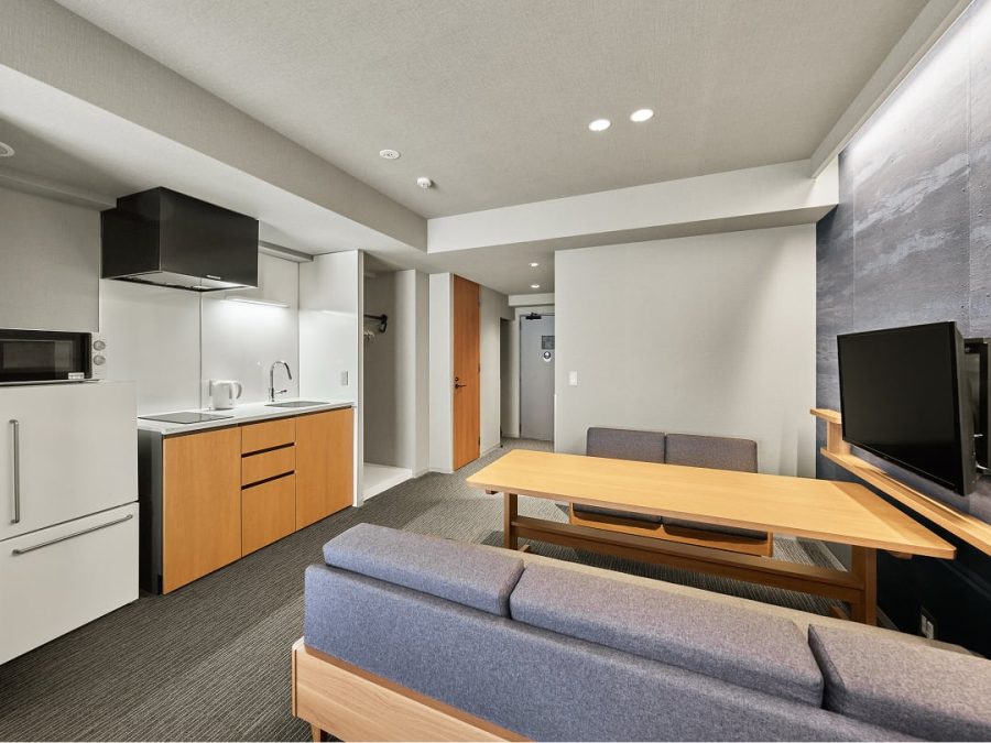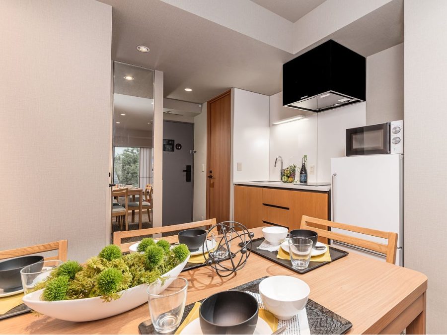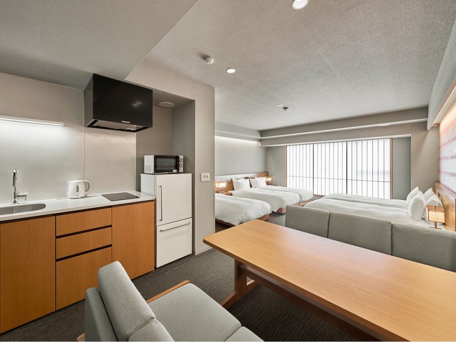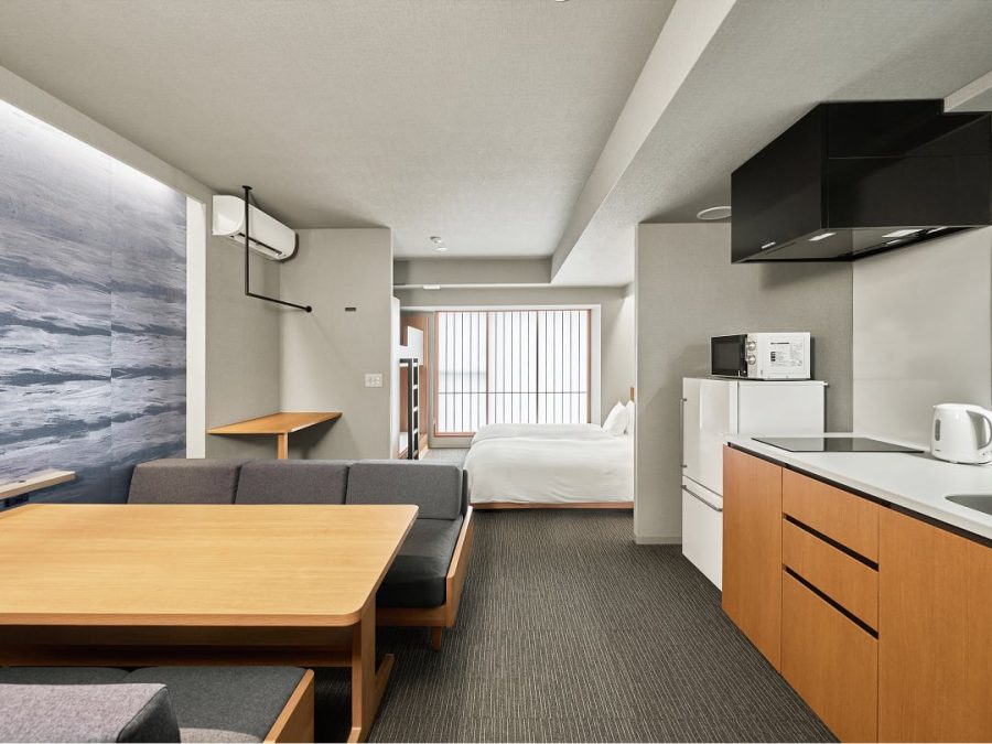 すべてのお部屋にキッチンや調理器具、ダイニングテーブルをご用意。旅先でも、まるで自分の家にいるかのようにくつろいで過ごせます。