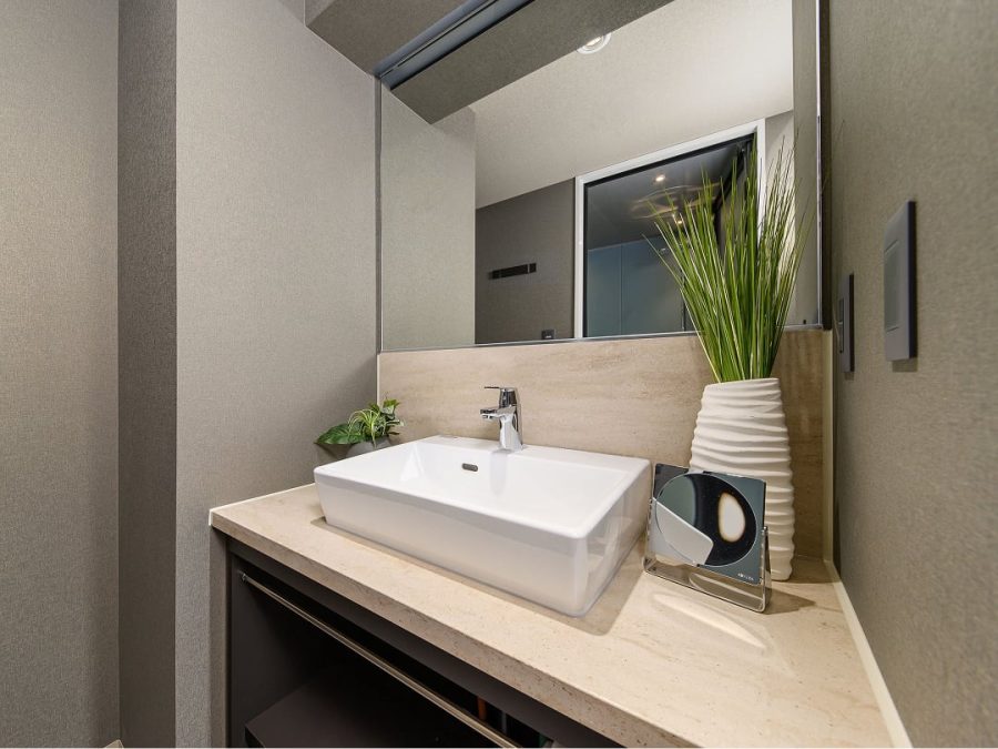洗面台とバスルームが別になっているのもポイント。広いバスルームで湯舟に浸かってゆったり疲れを癒してください。