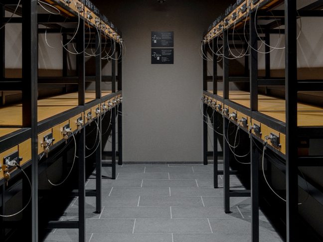 シングルベッドが6つ並んだ広めのお部屋。
