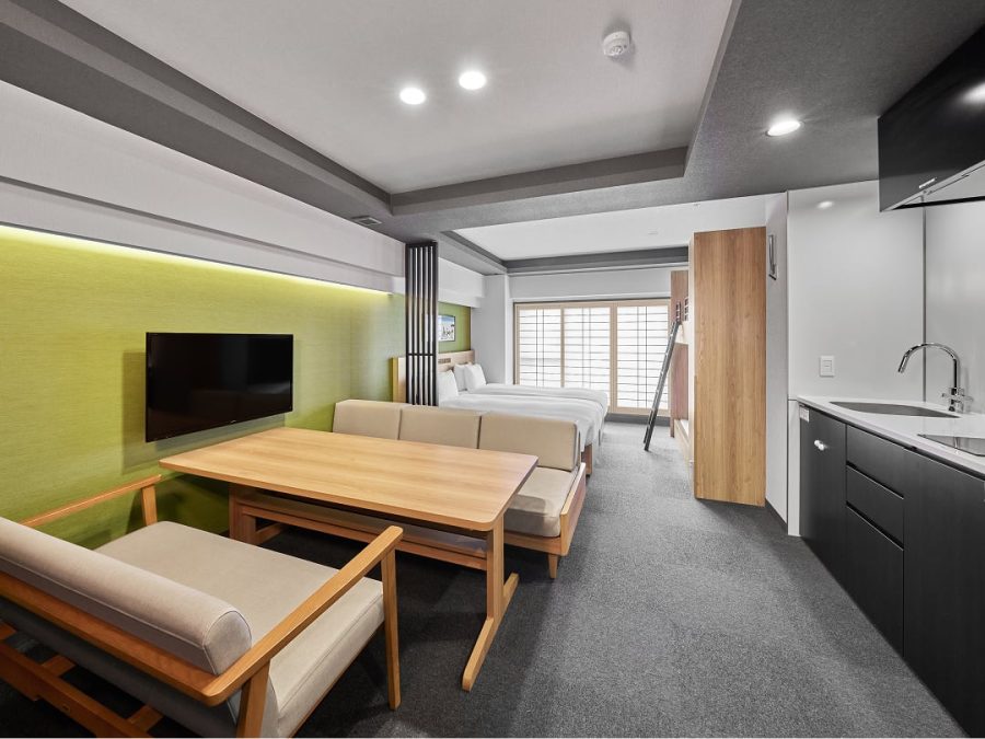 すべてのお部屋にキッチンや調理器具、ダイニングテーブルをご用意。旅先でも、まるで自分の家にいるかのようにくつろいで過ごせます。