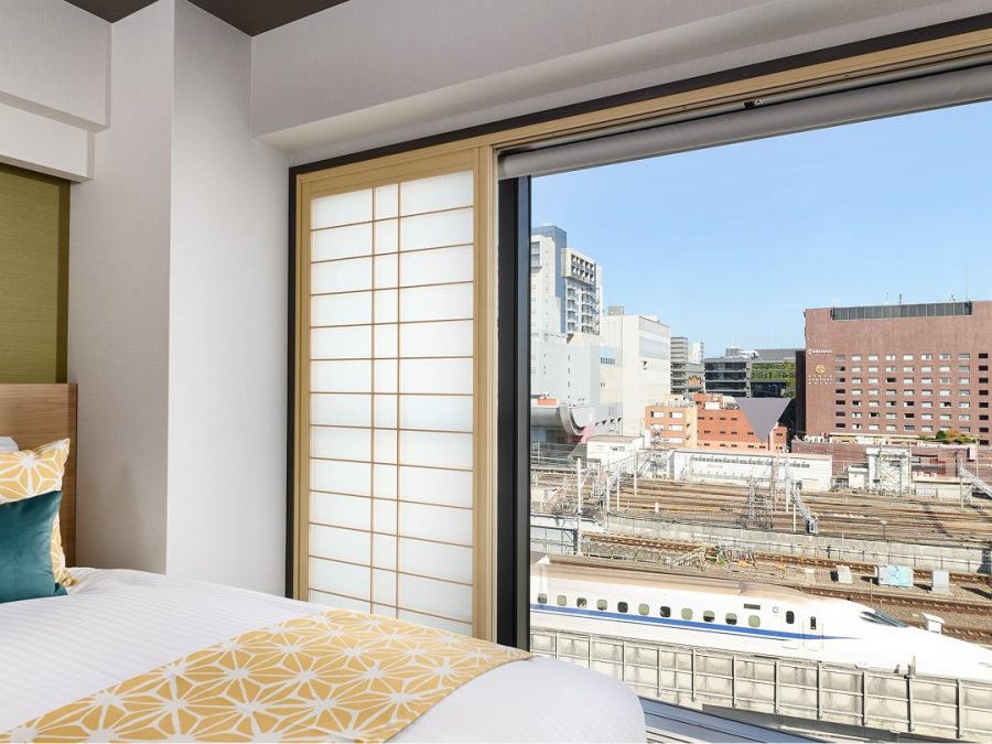 新幹線や街並みを眺めながら過ごせるお部屋です。