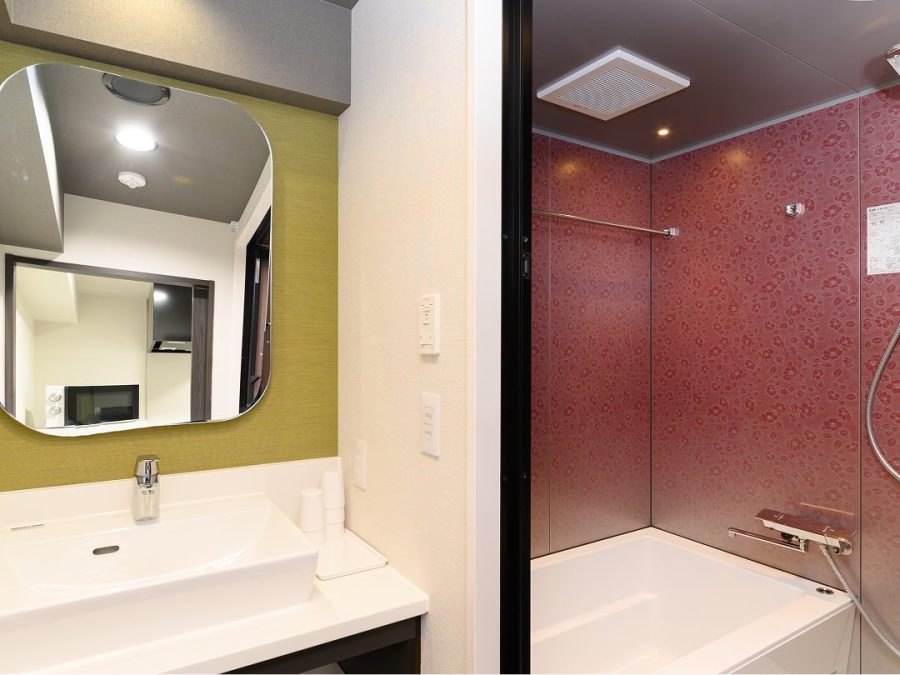 洗面台とバスルームが別になっているのもポイント。広いバスルームで湯舟に浸かってゆったり疲れを癒してください。