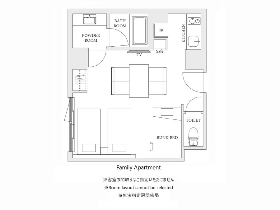 すべてのお部屋にキッチンや調理器具、ダイニングテーブルをご用意。旅先でも、まるで自分の家にいるかのようにくつろいで過ごせます。