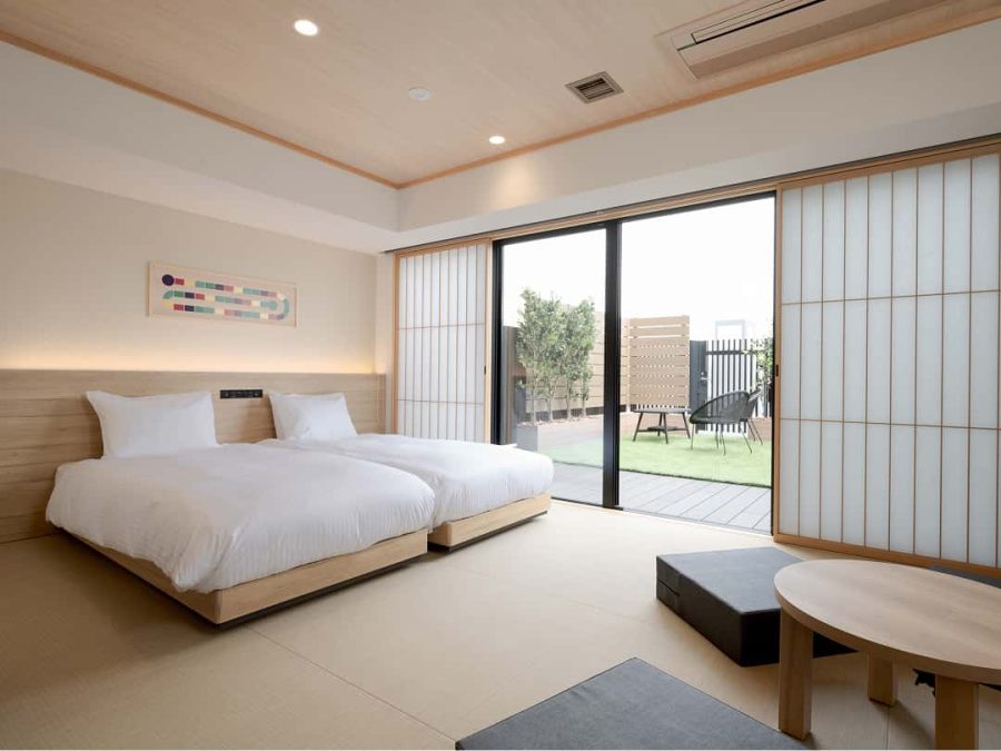 お部屋に完備したゲームを楽しんだり、専用テラスでは風を感じながら御食事したり第二のリビングとして寛いで頂けるお部屋。(和洋室)