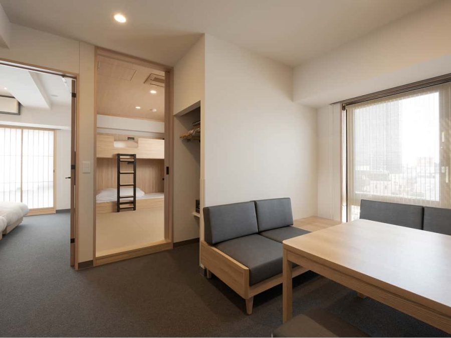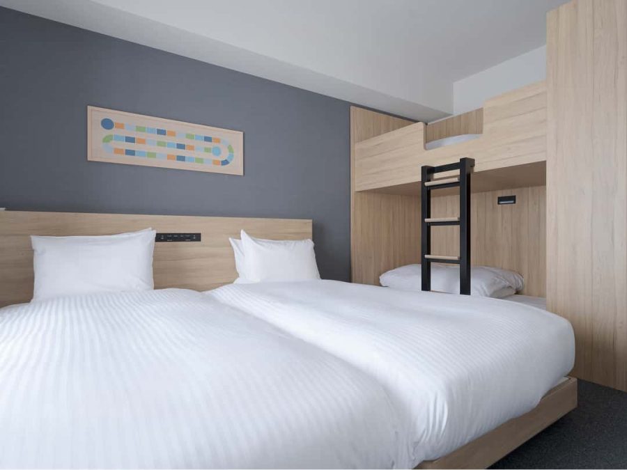 2つのベッドルームを備えたお部屋。子どもも喜ぶ2段ベッド付き。