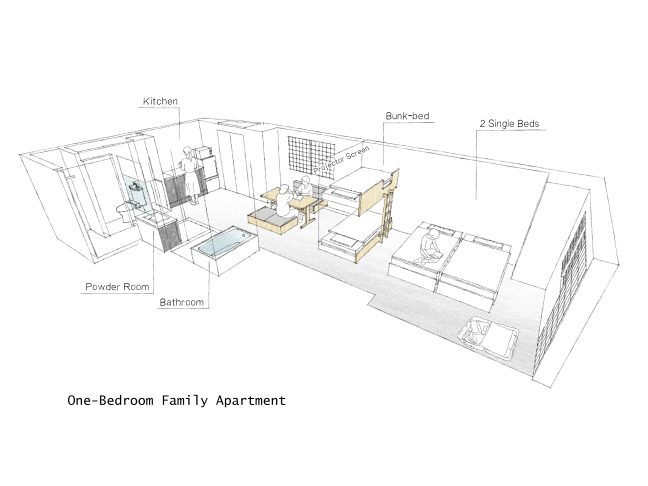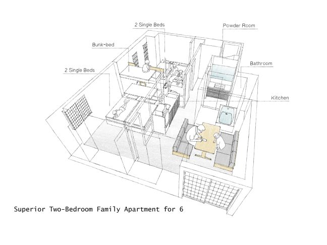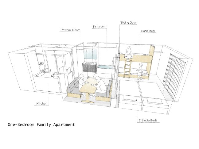 2つのベッドルームを備えたお部屋。子どもも喜ぶ2段ベッド付き。