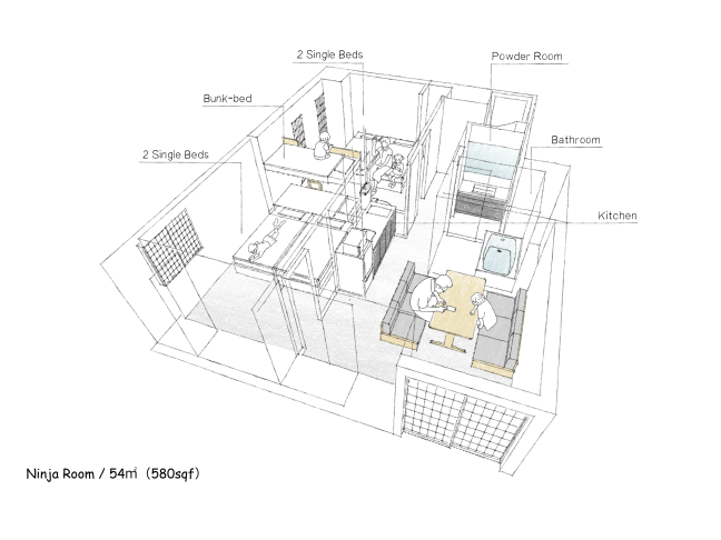 若々しさと和を基調としたデザイン、旅の秘密基地に。