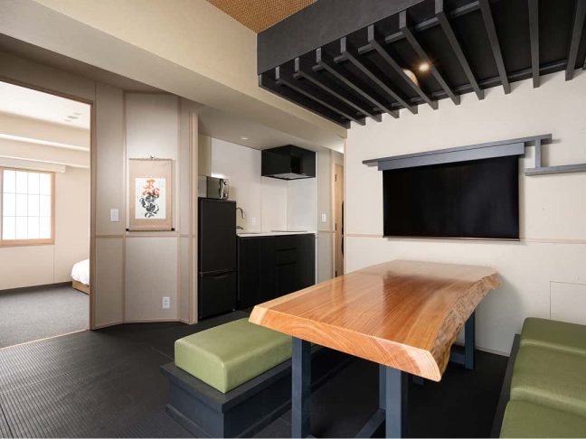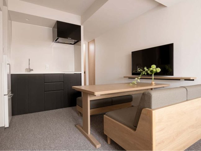 すべてのお部屋にキッチンや調理器具、ダイニングテーブルをご用意。旅先でも、まるで自分の家にいるかのようにくつろいで過ごせます。
