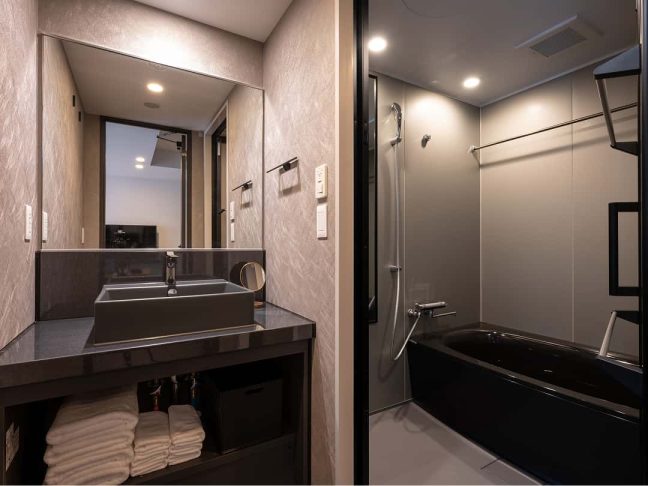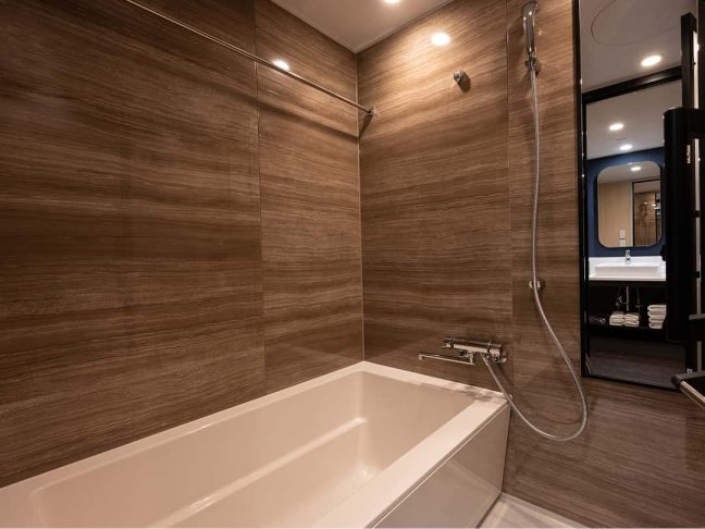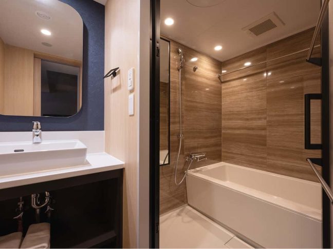 洗面台とバスルームが別になっているのもポイント。広いバスルームで湯舟に浸かってゆったり疲れを癒してください。