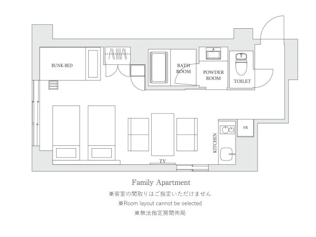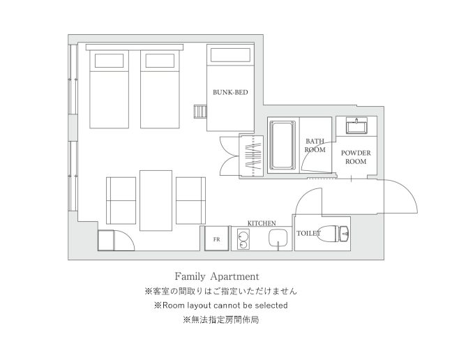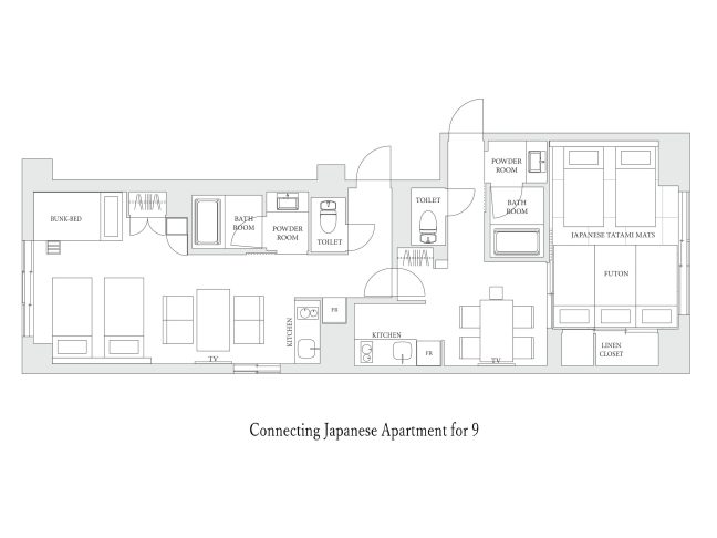 隣り合ったお部屋を内側のドアーつで行き来できるタイプ。一定のプライバシーは確保しつつ、グループで繋がることができます。
