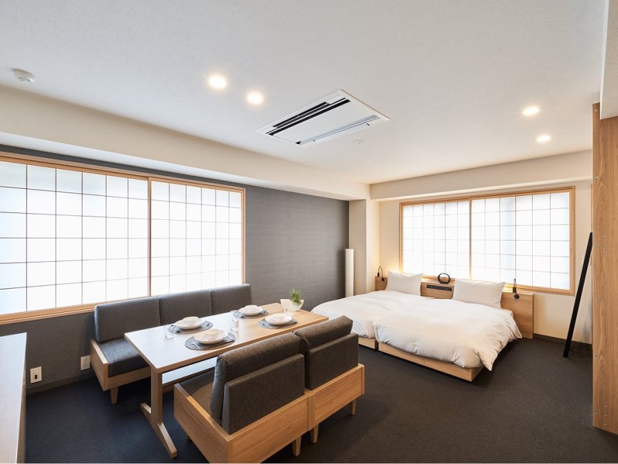 隣り合ったお部屋を内側のドアーつで行き来できるタイプ。一定のプライバシーは確保しつつ、グループで繋がることができます。