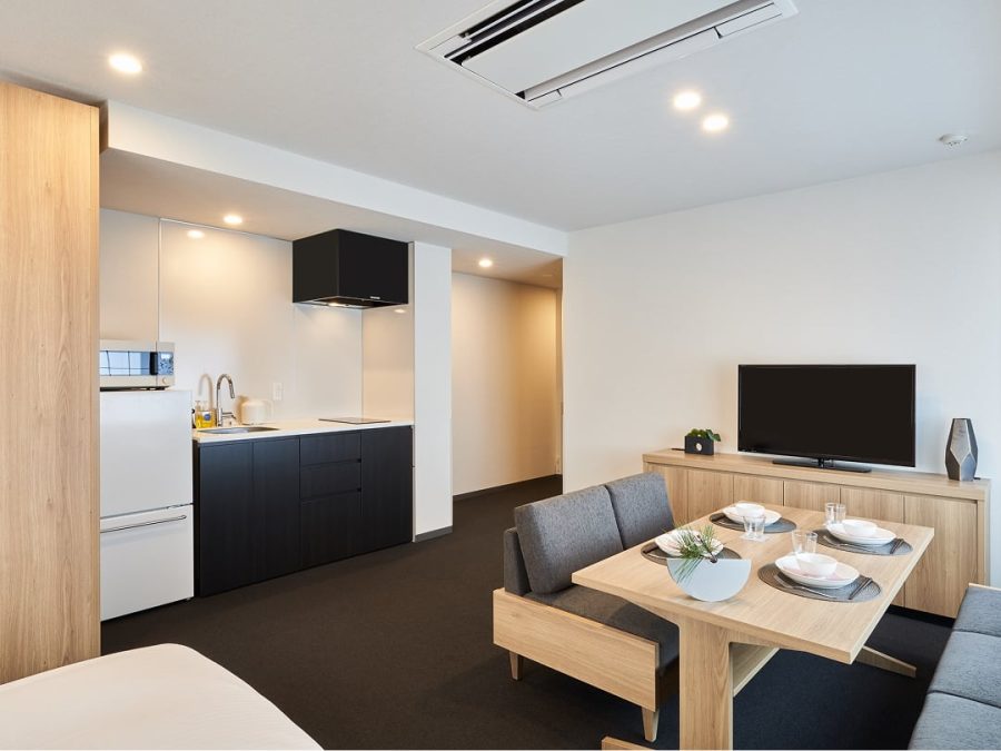 すべてのお部屋にキッチンや調理器具、ダイニングテーブルをご用意。旅先でも、まるで自分の家にいるかのようにくつろいで過ごせます。