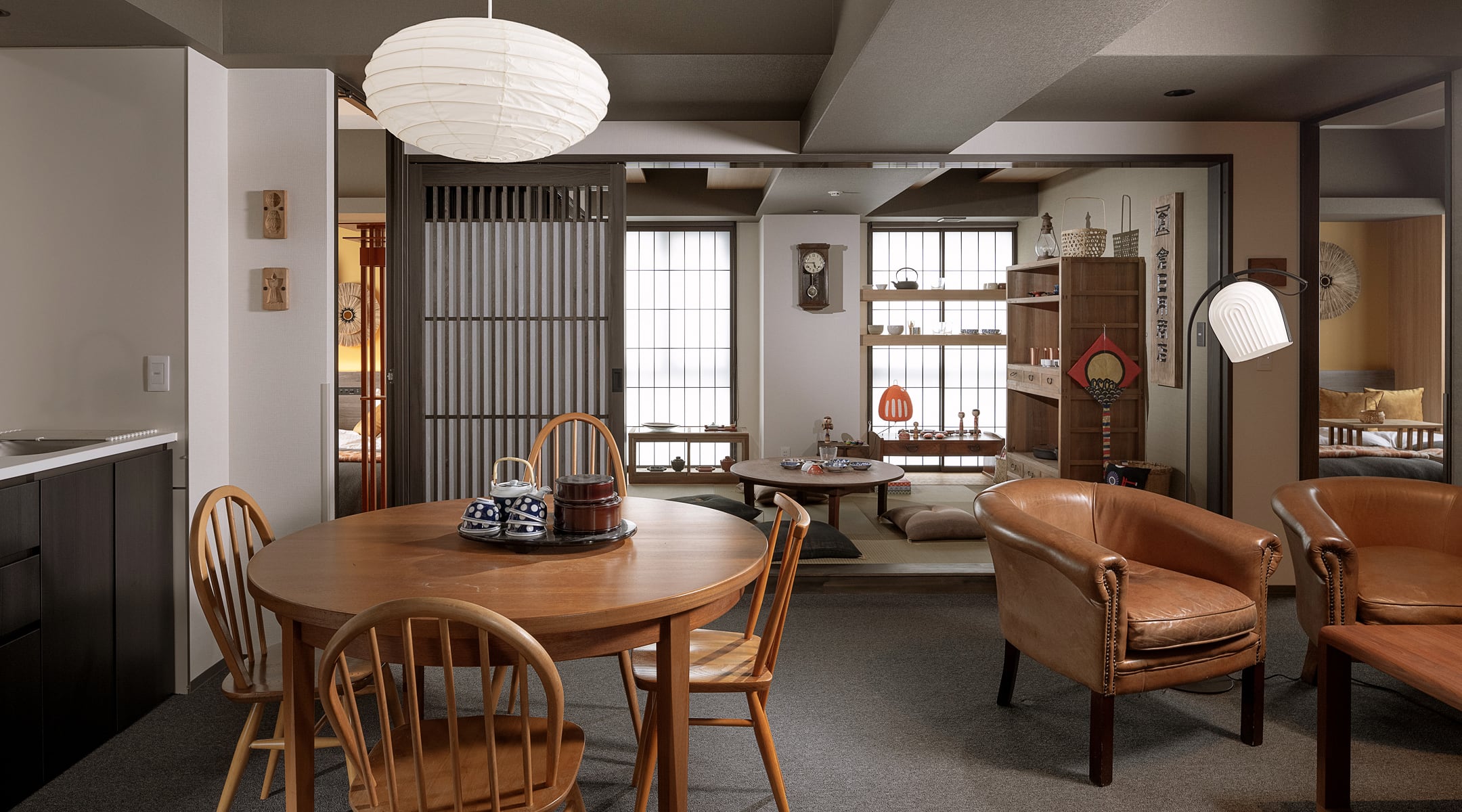2つのベッドルームと和室を備えたスイートルーム。和室の扉を開閉することで、お部屋をフレキシブルにお使いいただけます。
