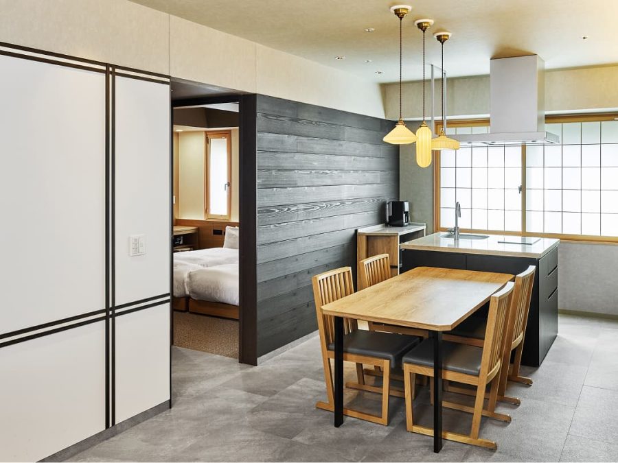 すべてのお部屋にキッチンや調理器具、ダイニングテーブルをご用意。旅先でも、まるで自分の家にいるかのようにくつろいで過ごせます。