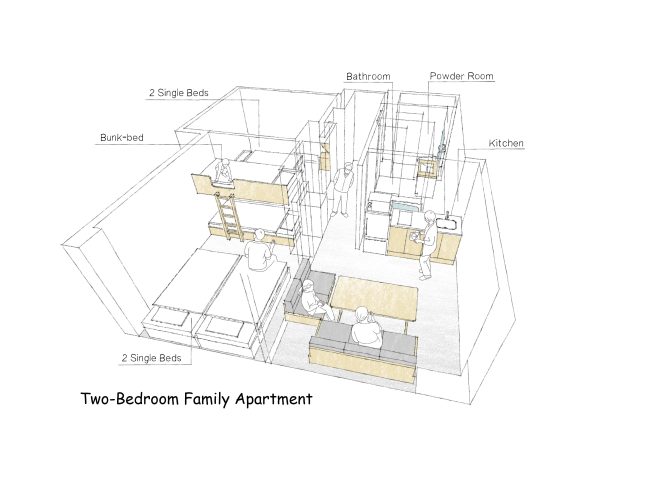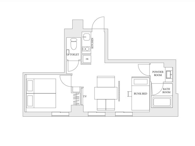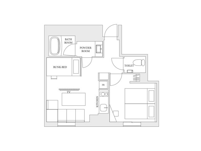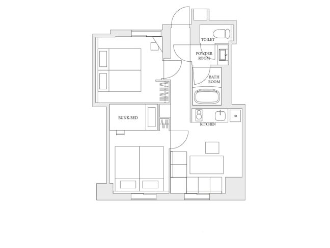 少し広めの2ベッドルーム。子どもも喜ぶ2段ベッド付き。