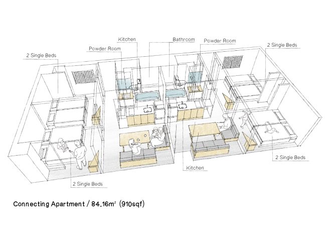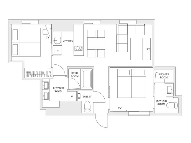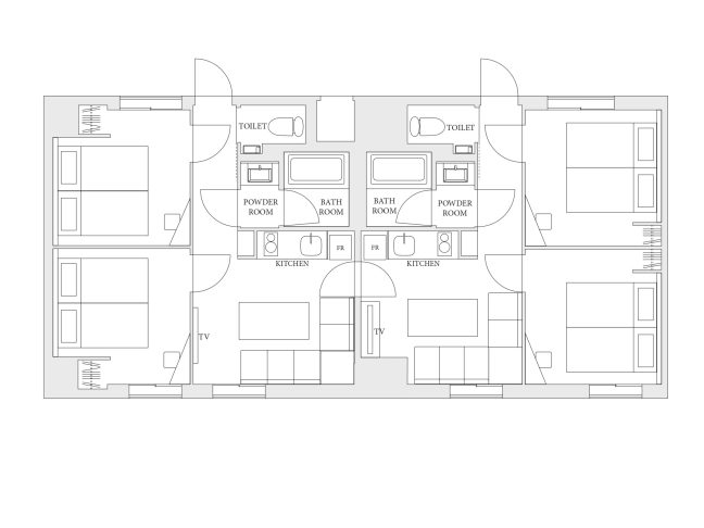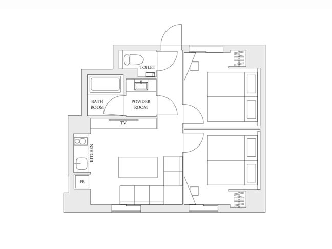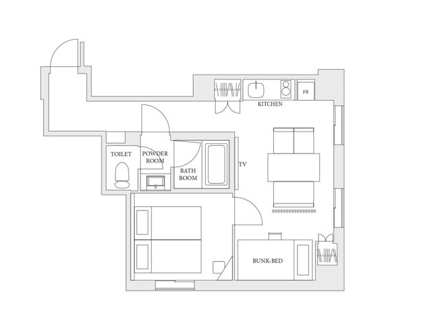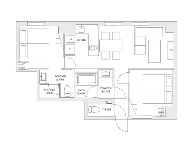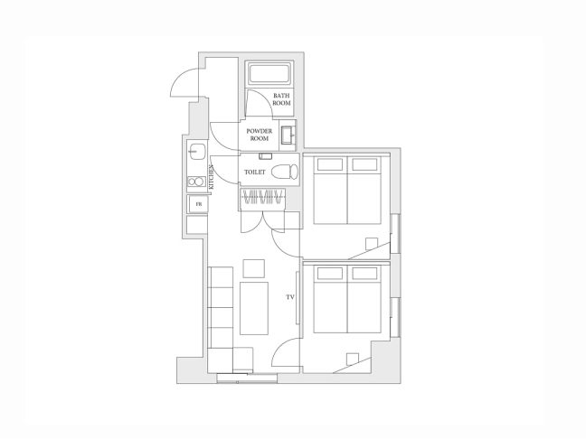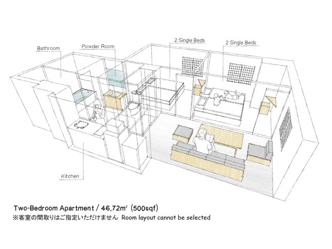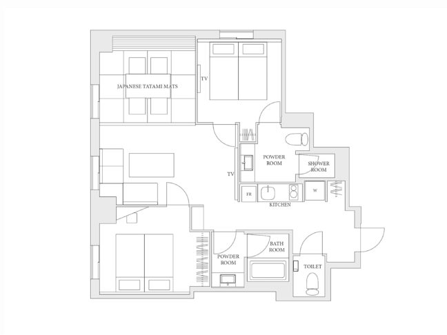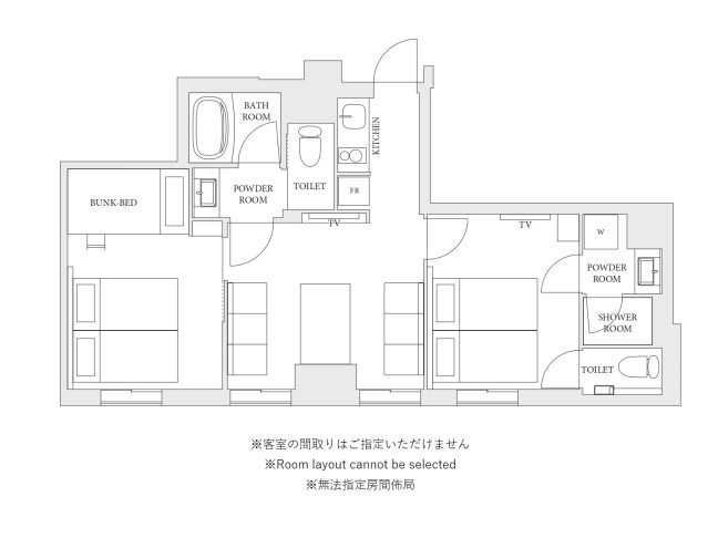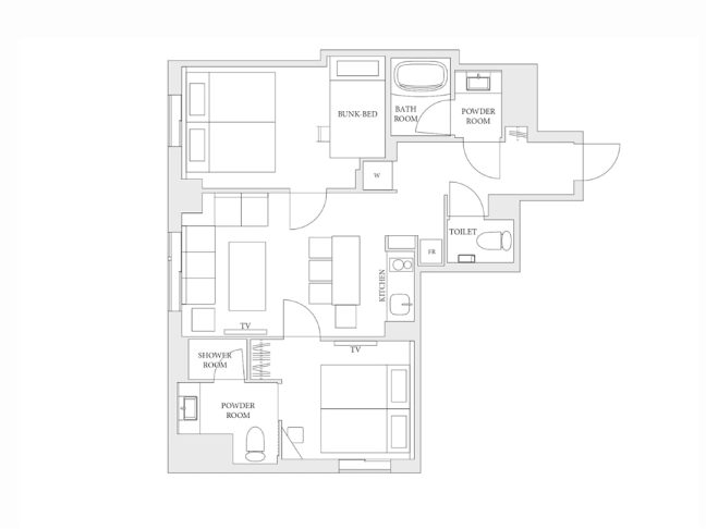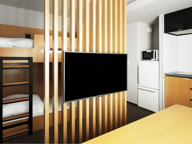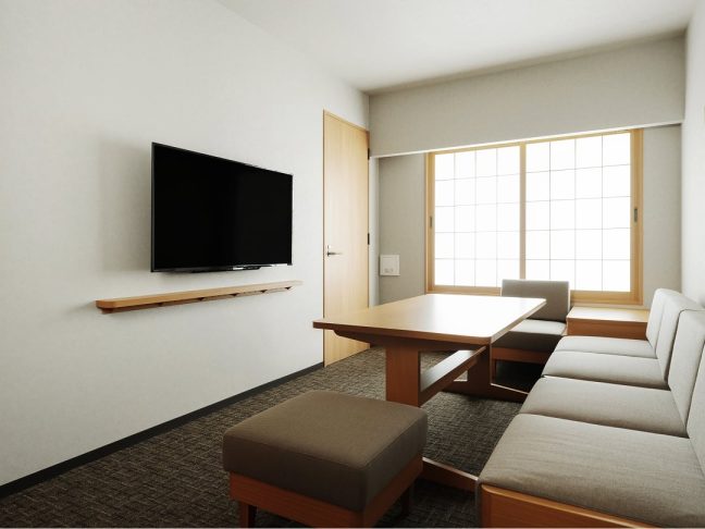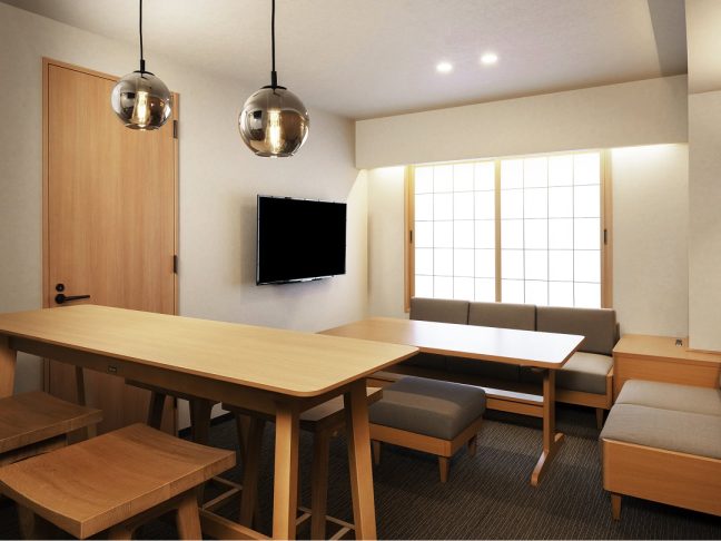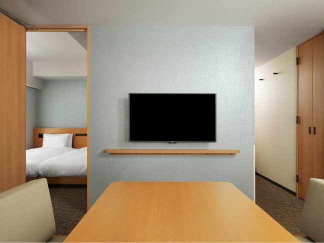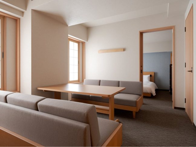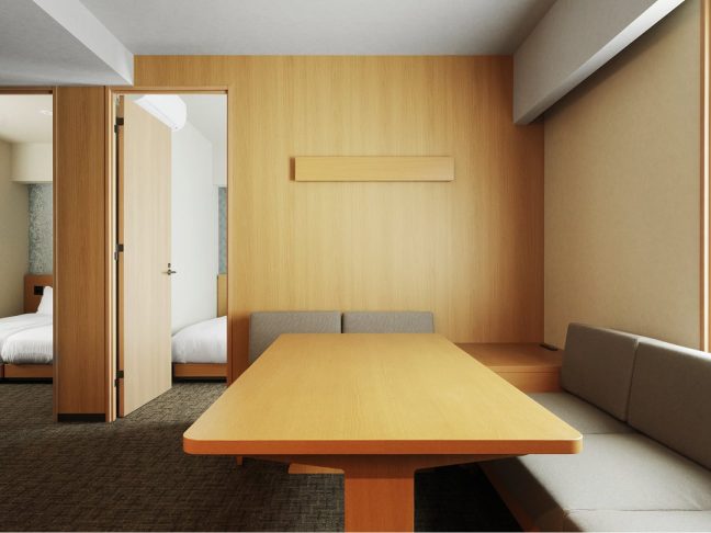 隣り合ったお部屋を内側のドアーつで行き来できるタイプ。一定のプライバシーは確保しつつ、グループで繋がることができます。