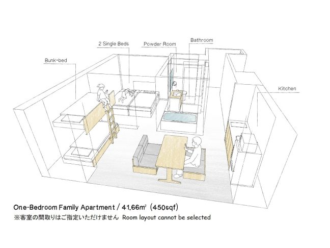 マスターベッドルームを備えたお部屋。子どもも喜ぶ2段ベッド付き。