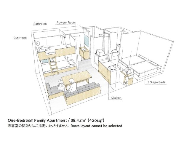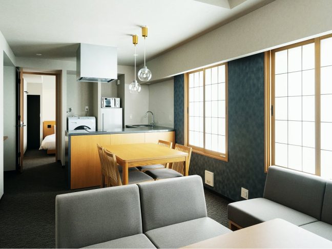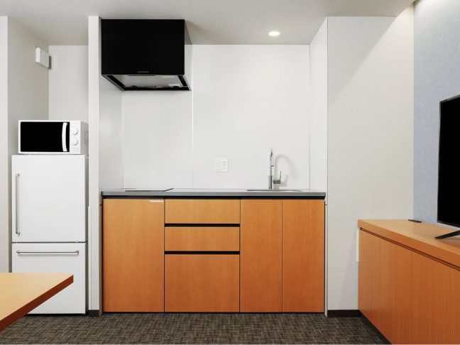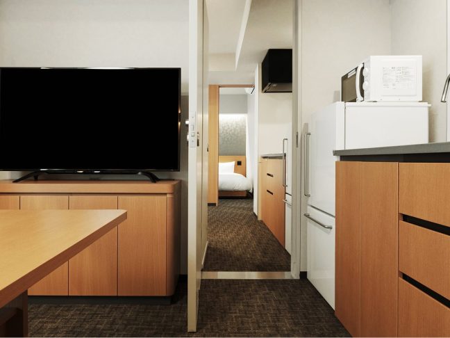 すべてのお部屋にキッチンや調理器具、ダイニングテーブルをご用意。旅先でも、まるで自分の家にいるかのようにくつろいで過ごせます。