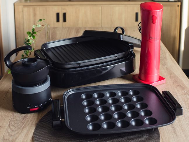 ロビーには、大阪の代表的な食事である「たこ焼き」を楽しめるホットプレートの貸し出しを行っています。生地を作り、ホットプレートに注ぎ、焼いて丸く形を整える!日本らしくたこ焼きパーティーをしてみるのはいかがでしょうか?