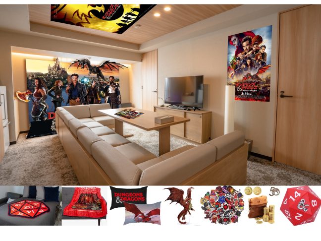 映画『ダンジョンズ&ドラゴンズ/アウトローたちの誇り』は、“運命は、誰と組むかにかかっている”という言葉の通り、運命を切り開くため、誰とパーティを組み、どんな手を使って攻略していくかが見どころの一つです。このテーマに合わせ、「MIMARU東京 池袋」では、D&Dの世界観を体感できるコラボレーションルームを設け、D&D公認のスペシャルダンジョンマスターがゲームを進行するイベントを開催します。3組限定で参加者を募集し、初対面のグループ同士でチームを結成、コラボルームで、映画の原作であるボードゲームや、劇中に登場するオリジナルドリンクをお楽しみいただけます。限定1室一夜限り、新しいエンタテーメントステイをご提供します。