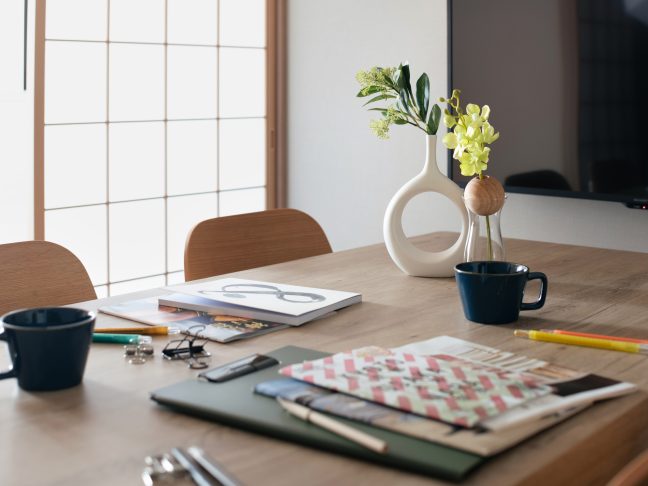 ③ 参考書やノートを広げて一緒に勉強できる、広いダイニングテーブル