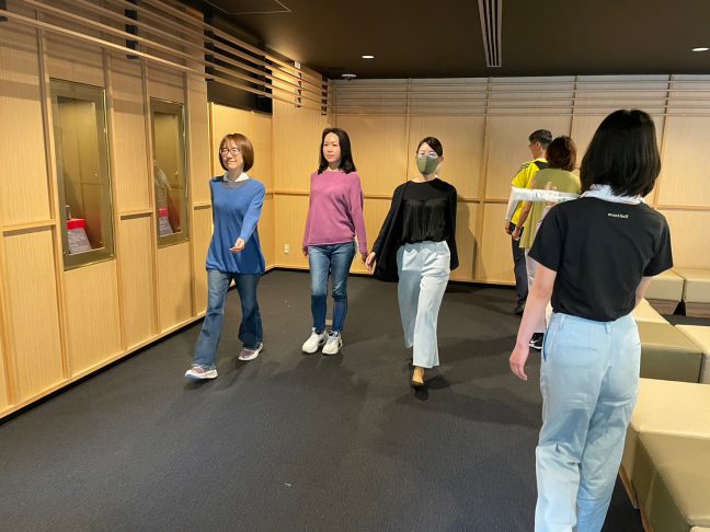 ポスチャーウォーキングは、健康で美しい体を作るための効率的なエクササイズで、ウェルネスツーリズムにぴったりでした。参加されたみなさまは、新しい学びの体験にワクワク。レッスン前と後のご自身の姿勢の違いにびっくりしたり、お互いに歩き方を確認したり、美しく歩く準備を調えました。当日の京都は、午後から小雨の予報だったので、雨の日に水がはねない歩き方も教えてもらいました。